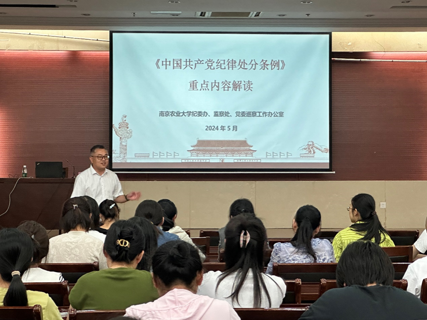 郭军洋重点解读了《中国共产党纪律处分条例》(以下简称《条例》)的修订的背景意义、主要内容和精神贯彻落实三个部分,逐条领学了《条例》分则的内容,详细剖析了教育系统违反廉洁纪律及群众纪律的典型案例,深入阐释了其深刻警示教育意义。她指出,有些反面典型案例的发生就在身边,这反映出部分党员宗旨意识不牢、纪律意识淡薄等突出问题,全体教师党员要坚持以案为戒,一方面要深入领会修订《条例》的重点内容和着力方向,强化自我约束,提高免疫能力,另一方面要加强党纪教育,树牢宗旨意识,增强遵规守纪自觉,敢于善于斗争,严格精准执纪。