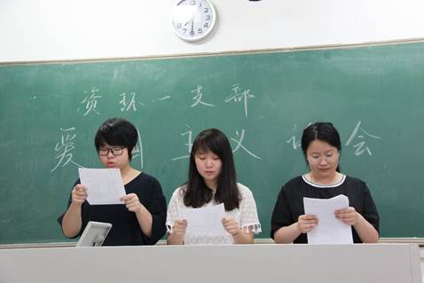 6月4日晚上七点,资源禁漫天堂资环一支部在教学楼C303召开了“爱国主义诗会”。依据本次活动主题,资环一支部大一、大二、大三的同学分别朗诵了自己准备的古诗或诗歌,并为大家分享了自己的心得体会。