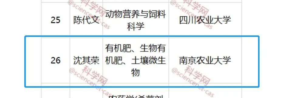 沈其荣教授为南京农业大学学术委员会主任、国家973计划首席科学家、国家863计划现代农业领域主题专家、国家自然科学基金委生命学部专家咨询委员、国务院学位委员会农业资源与环境学科评议组召集人、江苏省自然科学基金委农业学科组组长,长期从事有机(类)肥料和土壤微生物研究工作,技术工艺被全国100多家企业采用,为中国有机(类)肥料产业发展做出了突出贡献;以施用全元生物有机肥为核心技术的防控土传病害综合技术体系效果显著,得到大面积推广应用,为我国经济作物产业发展提供了部分技术支撑。在国际学术权威刊物上发表了大量学术论文,2014年以来连续7年入选爱思唯尔中国高被引学者,2019以来年入选科睿唯安全球高被引科学家,截止目前SCI核心合集H指数61,获全国创新争先奖、中华农业英才奖、光华工程科技奖、国家教学名师等称号。