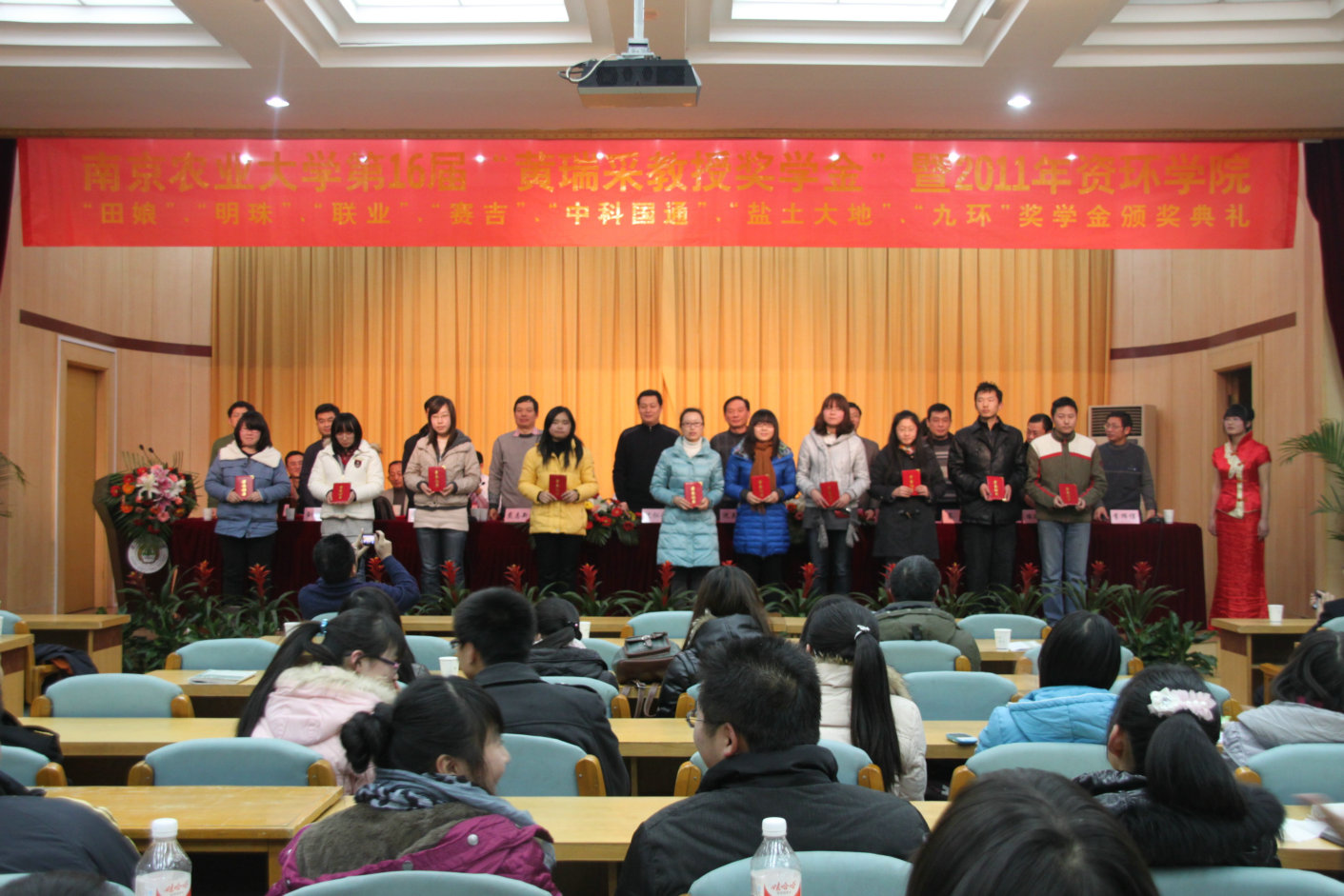 2011年“田娘”、“明珠”、“联业”、“赛吉”、“中科国通”、“盐土大地”、“九环”奖学金颁奖大会在金陵研究院国际报告厅举行。中科院南京土壤研究所所长、中国土壤学会常务副理事长沈仁芳研究员,省农委戴志新副巡视员,我校副校长沈其荣教授及国家环保总局南京环科所、中科院土壤研究所、省农科院、省农林厅、省环保厅等单位的领导、校友,企业负责人、学校部分机关部门负责人、禁漫天堂