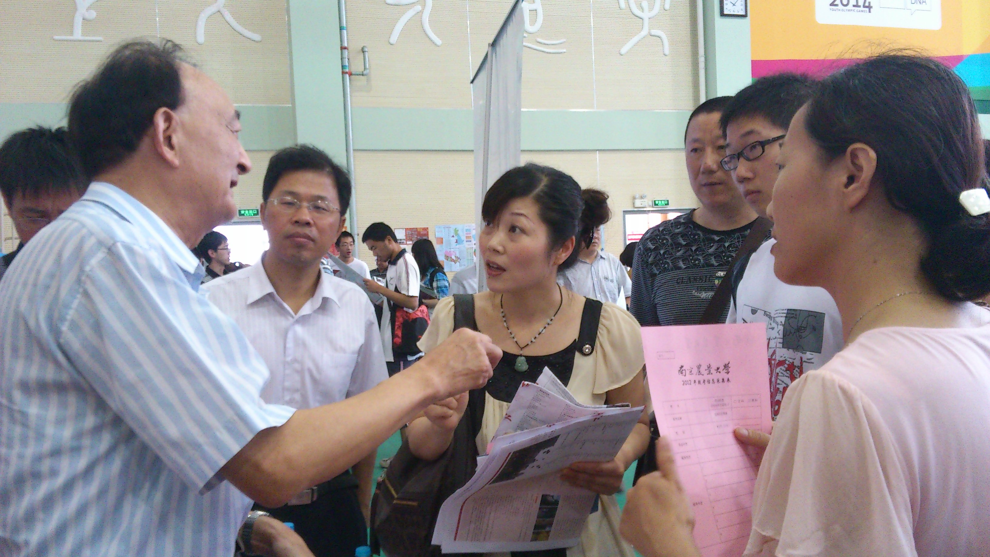 在中学的招生宣讲会上,在限时两分钟之内,曹光辛教授以简要、风趣的语言,介绍了我校的办学特色、招生政策和学校概况,精彩的演讲赢得了一片称赞和掌声,吸引了更多考生和家长对南京农业大学的关注。