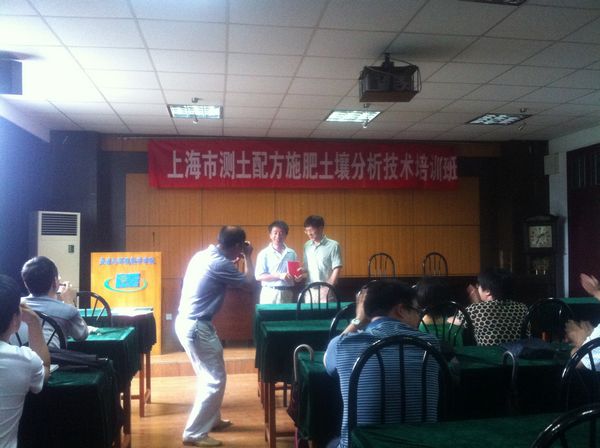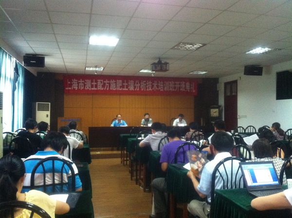 和上海市农业技术推广服务中心共同举办的测土配方施肥土壤分析技术培训班。