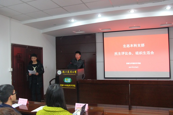 资环本科支部、生态本科支部、环工本科支部、植物营养研究生党支部、海洋科学研究生党支部、土壤学研究生党支部、生态学研究生党支部、环境科学研究生党支部、环境工程研究生党支部、专业硕士研究生党支部,则在负责党建工作的万小羽老师的组织下于B211召开了此次会议。
