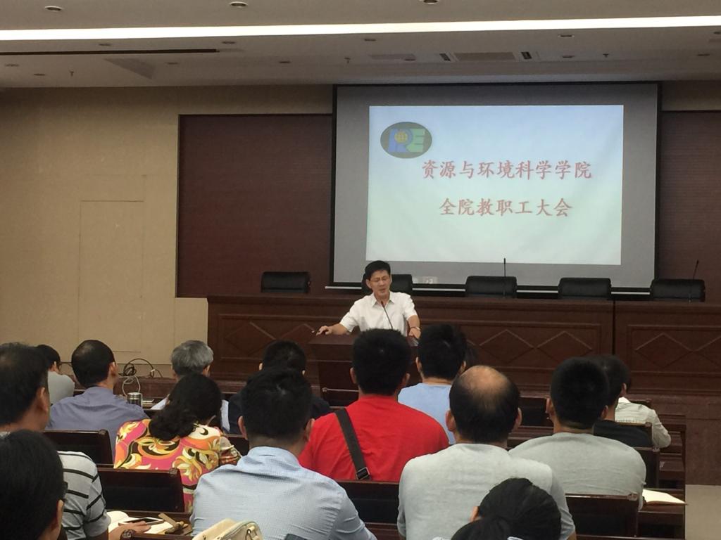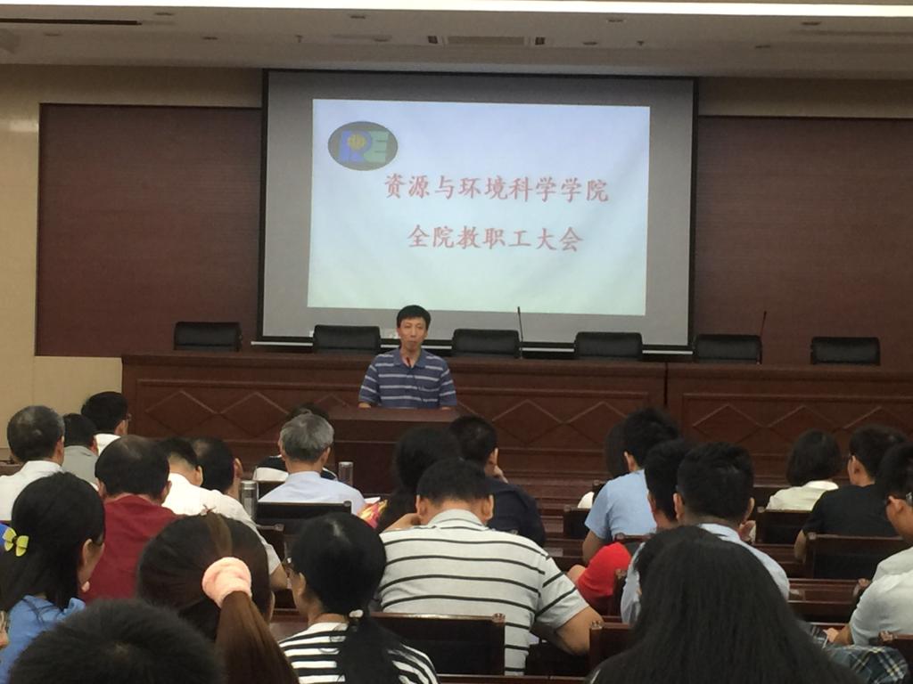李辉信书记向全院教职工传达了学校新学期工作会议精神。他首先传达了盛邦跃副书记关于学校党委的主要工作要点,随后传达了周光宏校长提出的“世界一流大学应该有一流的学生与教学,一流的学科与专业,一流的师资队伍,一流的科研与成果,一流的设施,一流的影响与话语权,一流的管理与保障”的要求。