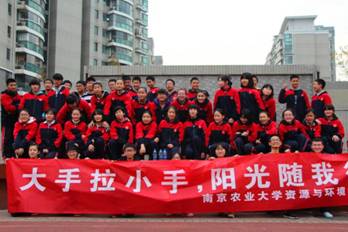 11月21日下午,禁漫天堂 志愿队走进南京市弘光中学与初二(六)班的中学生一同在操场上举行了一场别开生面的班会活动。