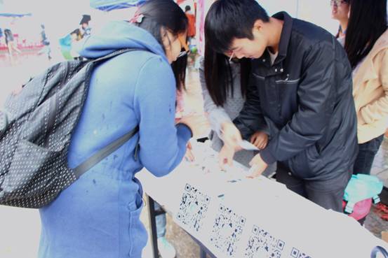 2014年11月27日中午新媒体中心在玉兰路口举办了"梦不留憾,资少有你”活动。该活动共分为两个部分,一个是向微信平台发送自己的一周内的短期目标,并随时记录自己的进展情况;另一个是在活动现场匿名写下自己近期的小遗憾。