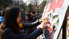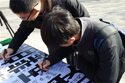 在该活动中,同学们通过用白纸折叠千纸鹤,在宣传板上贴白花和在横幅上签下自己的名字的方式来表达自己的哀悼之情。还有不少同学对着摄相机镜头,抒发了自己对活动的感受,他们纷纷表示,我们如今处于和平的年代,要铭记父辈们的惨痛经历,珍惜生活,奋发向上。