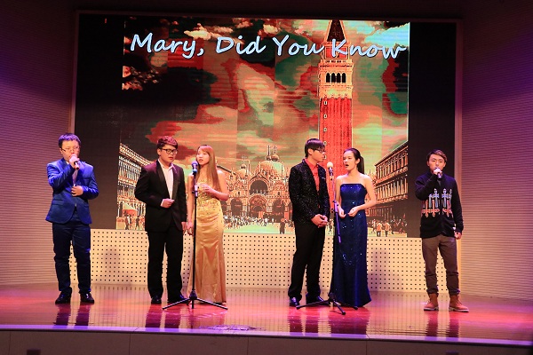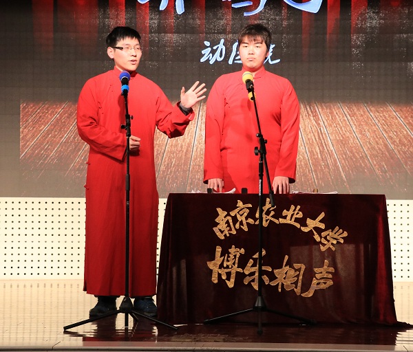 器乐团合奏的《感恩的心》一曲响起,晚会再次回到精彩的表演中。阿卡贝拉组合“Noise maker”给全场带来了声音碰撞出的动听歌声,赢得观众阵阵掌声。动医禁漫天堂的两位同学带来的相声表演《养鸽子》,以幽默风趣的语言引得全场阵阵笑声。