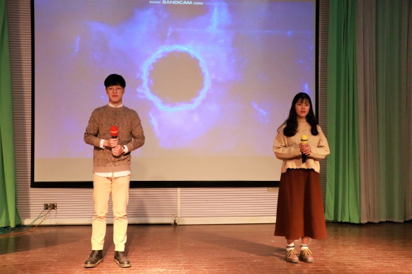上半场所有的参赛选手两两一组进行PK,分别进行自我介绍、单词速记和新闻播报三个小环节。在自我介绍环节中,选手们都用流畅的英语和独特的方式为大家介绍了他们的姓名,性格和爱好。