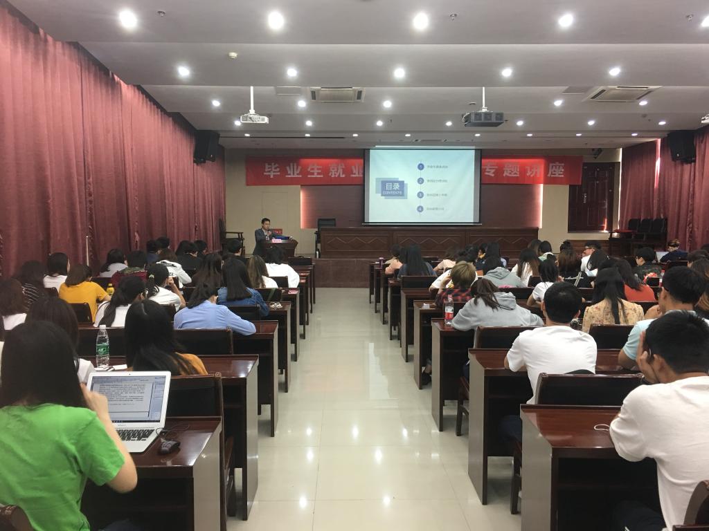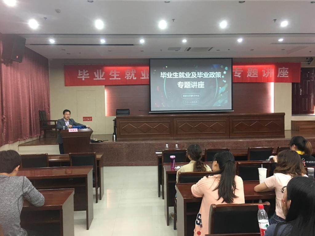 2018届毕业生就业及毕业政策专题讲座在资环楼一楼报告厅举行。